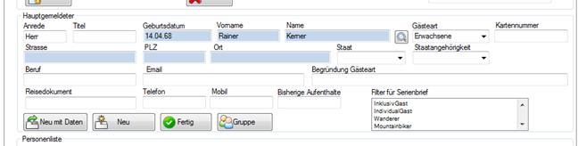 Wichtig: Erst ein Klick auf eine dieser Schaltflächen schließt die Bearbeitung eines Gastes ab. Wenn Sie einen Meldeschein speichern werden nur die Personen gespeichert, die unten in der Liste stehen.
